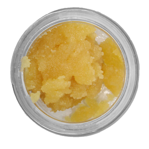 Live resin distinguishes itself from other types of cannabis concentrates because it is created with fresh frozen cannabis—plants that are frozen immediately after being cut down at harvest. These plants are kept frozen throughout the extraction process and skip the drying, curing, and trimming phases of harvesting. It is a more malleable concentrate, sitting somewhere between a wax and a sauce—not quite like taffy yet not too wet. It is typically dark yellow in color but can vary from light yellow to white. Like all cannabis concentrates, it is extremely sticky, so you’ll need a dab tool to handle it. Live resins tend to be potent with a lot of THC, and consumers love it because of its intense flavors and aromas.
